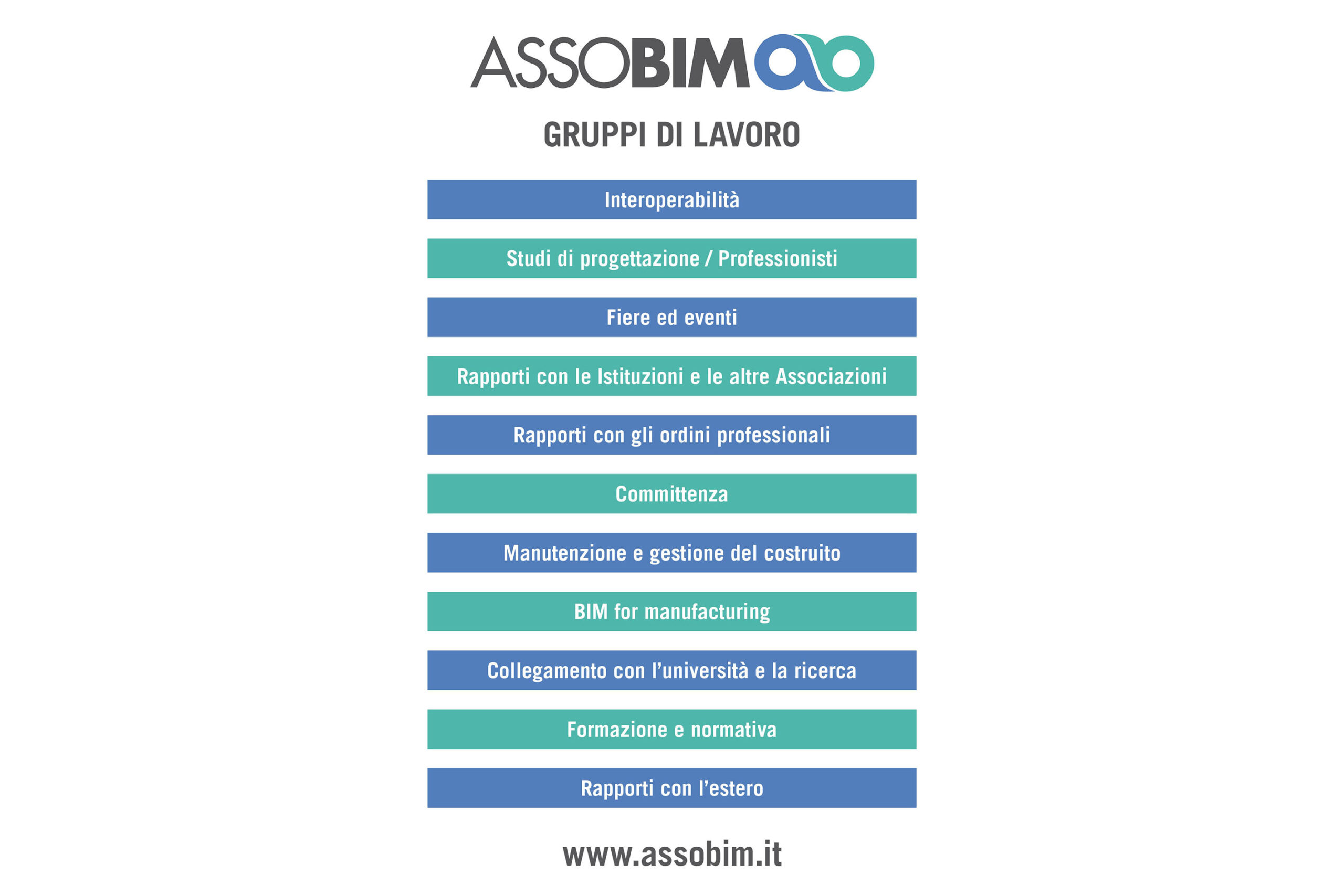 Fin dall’inizio delle sue attività ASSOBIM, l’associazione nata per sostenere il processo di digitalizzazione dell’intera filiera tecnologica delle costruzioni e promuovere la diffusione del Building Information Modeling, ha puntato con convinzione sulla necessità di accrescere non solo la cultura del BIM ma anche e soprattutto la consapevolezza dei vantaggi che questa metodologia offre a tutti gli attori della filiera e gli strumenti idonei a massimizzarne le opportunità. Fra le numerose iniziative promosse dall’Associazione per estendere progressivamente il proprio raggio d’azione e coinvolgere un sempre maggior numero di professionisti, enti e aziende, i Gruppi di Lavoro sono i tavoli tecnici che hanno visto i soci affrontare tematiche specifiche quali Rapporti Istituzionali, Rapporti con gli Ordini professionali, Committenza, Manutenzione e Gestione del costruito, Produzione (BIM Manufacturing), Collegamento con l’Università e la Ricerca, Formazione e Normativa, Rapporti con l’estero. La forte partecipazione e i risultati raggiunti da questi organismi, oltre a confermare la bontà della formula, hanno perciò indotto ASSOBIM a estenderne il raggio d’azione con la creazione di tre nuovi Gruppi, significativamente dedicati a Interoperabilità, Studi di progettazione e Professionisti, Fiere ed Eventi, che vanno ad aggiungersi agli otto già attivi.
