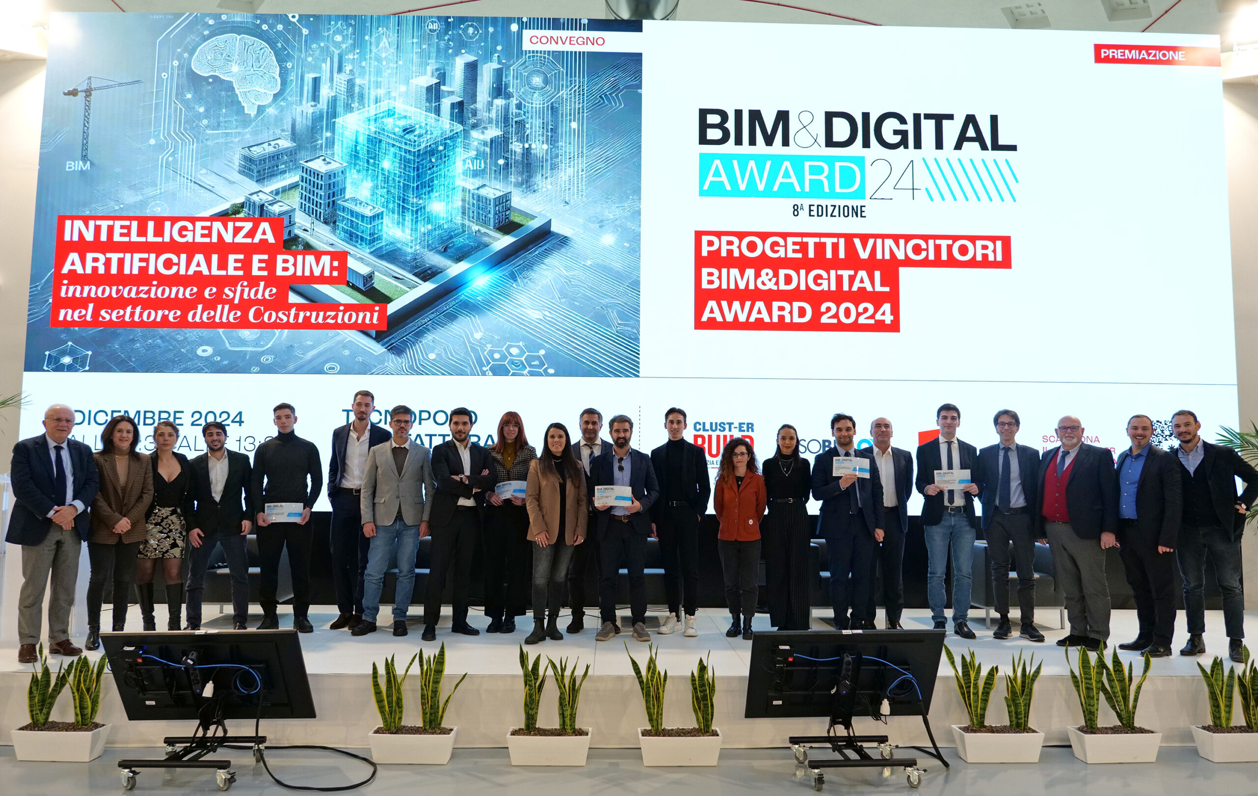 Si è svolta venerdì 6 dicembre 2024 presso il Tecnopolo Bologna CNR la cerimonia di premiazione dell’ottava edizione del BIM&Digital Award, il prestigioso riconoscimento promosso da Clust-ER Build in collaborazione con ASSOBIM e SAIE.