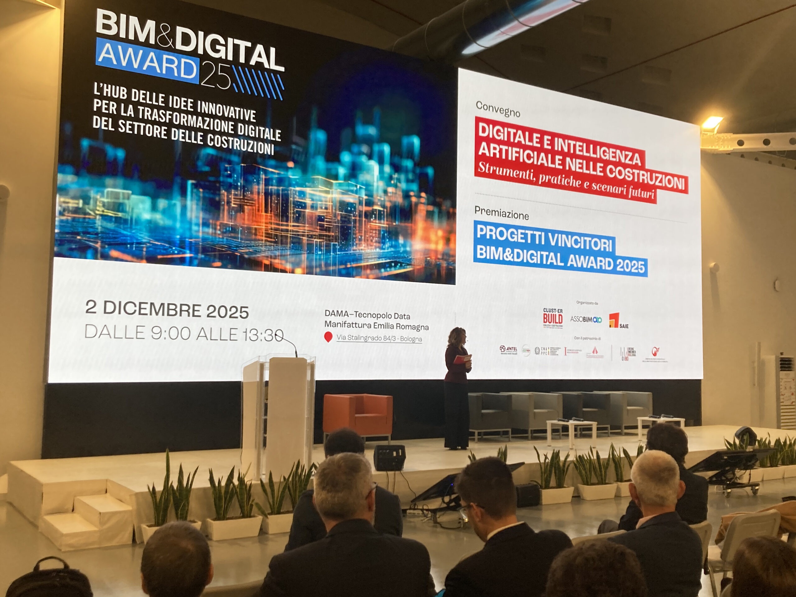 Si è svolta martedì 2 dicembre 2025 presso il DAMA – Tecnopolo Data Manifattura Emilia-Romagna la cerimonia di premiazione della nona edizione del BIM&Digital Award, il prestigioso riconoscimento promosso da Clust-ER Build in collaborazione con ASSOBIM e SAIE.