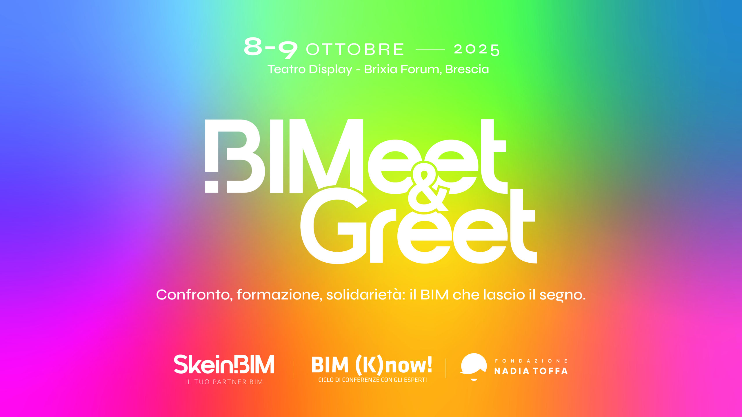 BIMeet&Greet è realizzato in stretta collaborazione con la Fondazione Nadia Toffa, che condivide i valori di impegno, responsabilità e impatto sociale positivo. Questo coinvolgimento sottolinea la volontà dell’evento di andare oltre l’innovazione tecnica, per promuovere una cultura del fare capace di generare impatto reale e duraturo nella società. A conferma di questo spirito, l’intero ricavato sarà devoluto alla Fondazione, a sostegno dei suoi progetti. Durante le due giornate, troveranno spazio, però, anche altre realtà associative di grande valore umano, come Lollo per la sindrome di Brugada e l’Associazione Italiana Progeria Sammy Basso, che porteranno testimonianze dirette attraverso momenti di dialogo e sensibilizzazione.
