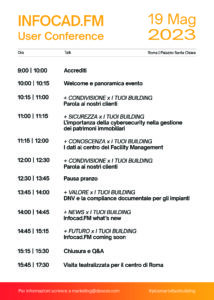 Infocad.FM organizza la “User Conference” per Venerdì 19 maggio 2023 in presenza a Roma, Palazzo Santa Chiara.