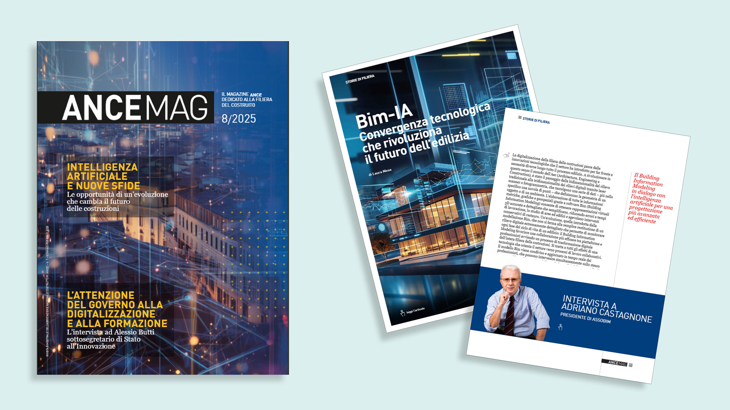 BIM e AI quali elementi trainanti per l’evoluzione della filiera delle costruzioni. Leggi l’intervista al presidente ASSOBIM, Adriano Castagnone, pubblicata dalla rivista AnceMag, organo ufficiale dell’Ance, Associazione Nazionale Costruttori Edili.La rivista è consultabile a questo link