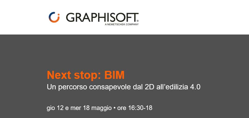 Con “Next stop BIM” Graphisoft lancia due appuntamenti gratuiti per aprire la strada alla vera progettazione BIM: giovedì 12 maggio e mercoledì 18 maggio entrambi dalle 16,30 alle 18 la softwarehouse vuole proporre un percorso consapevole dal 2D all’edilizia 4.0.