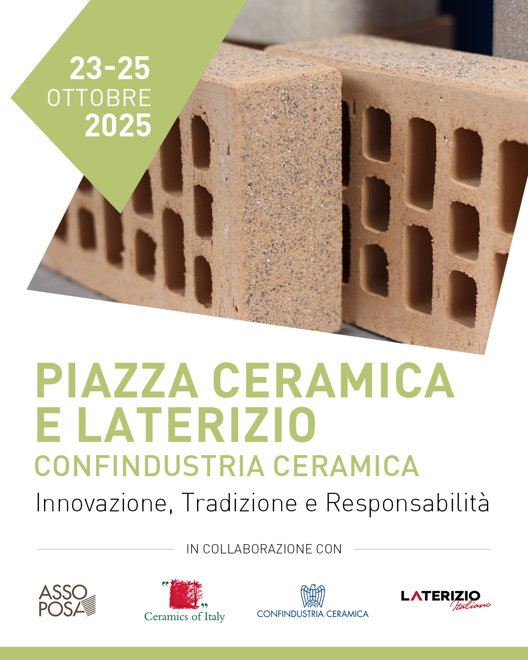 Tra le iniziative speciali in programma (in evidenza all’interno del percorso sostenibilità) si svolgerà la Piazza Ceramica e Laterizio organizzata da Confindustria Ceramica: uno spazio collettivo che riunisce aziende rappresentative dei comparti italiani di laterizi e piastrelle intorno al tema della responsabilità nell’edilizia. Un concetto che trova espressione nella campagna Ceramics of Italy 2025 “Io scelgo la responsabilità. Fallo anche tu”, un invito concreto a scegliere materiali che raccontano attenzione all’ambiente e alle persone. Un filo conduttore, questo, che unisce comunicazione, produzione e progettazione, rilanciando il ruolo del laterizio e della ceramica nella transizione ecologica.