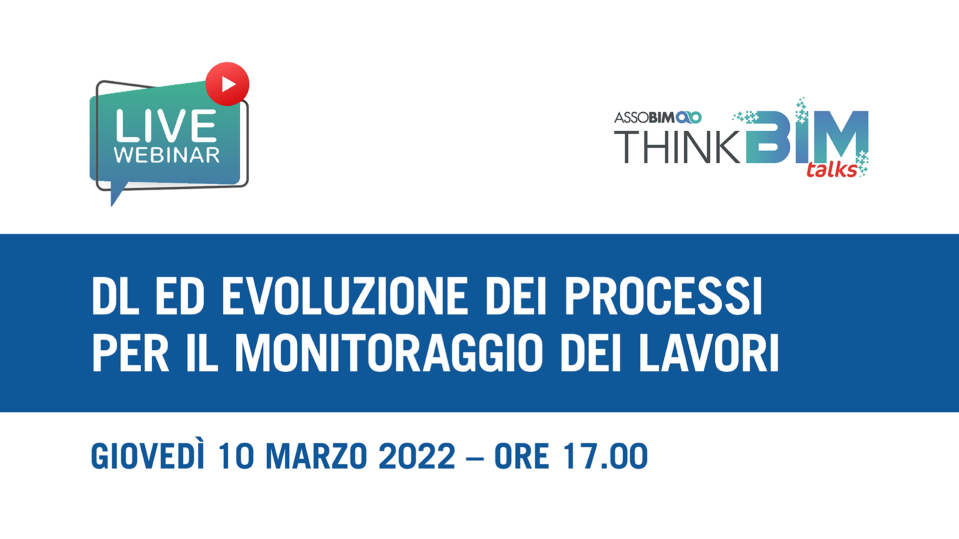 ASSOBIM organizza il Talks “DL ed evoluzione dei processi per il monitoraggio dei lavori” per il giorno 10 marzo 2022 dalle ore 17.