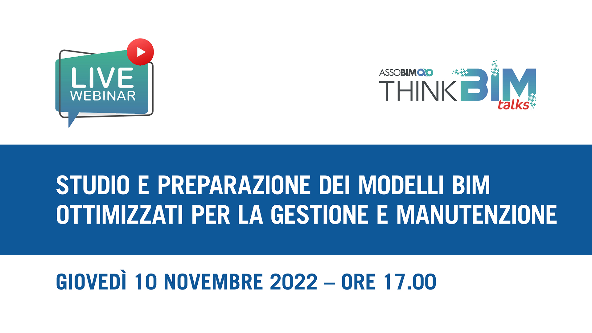 ASSOBIM organizza il Talks “Studio e preparazione dei modelli BIM ottimizzati per la gestione e manutenzione” per il giorno 10 novembre 2022 dalle ore 17.