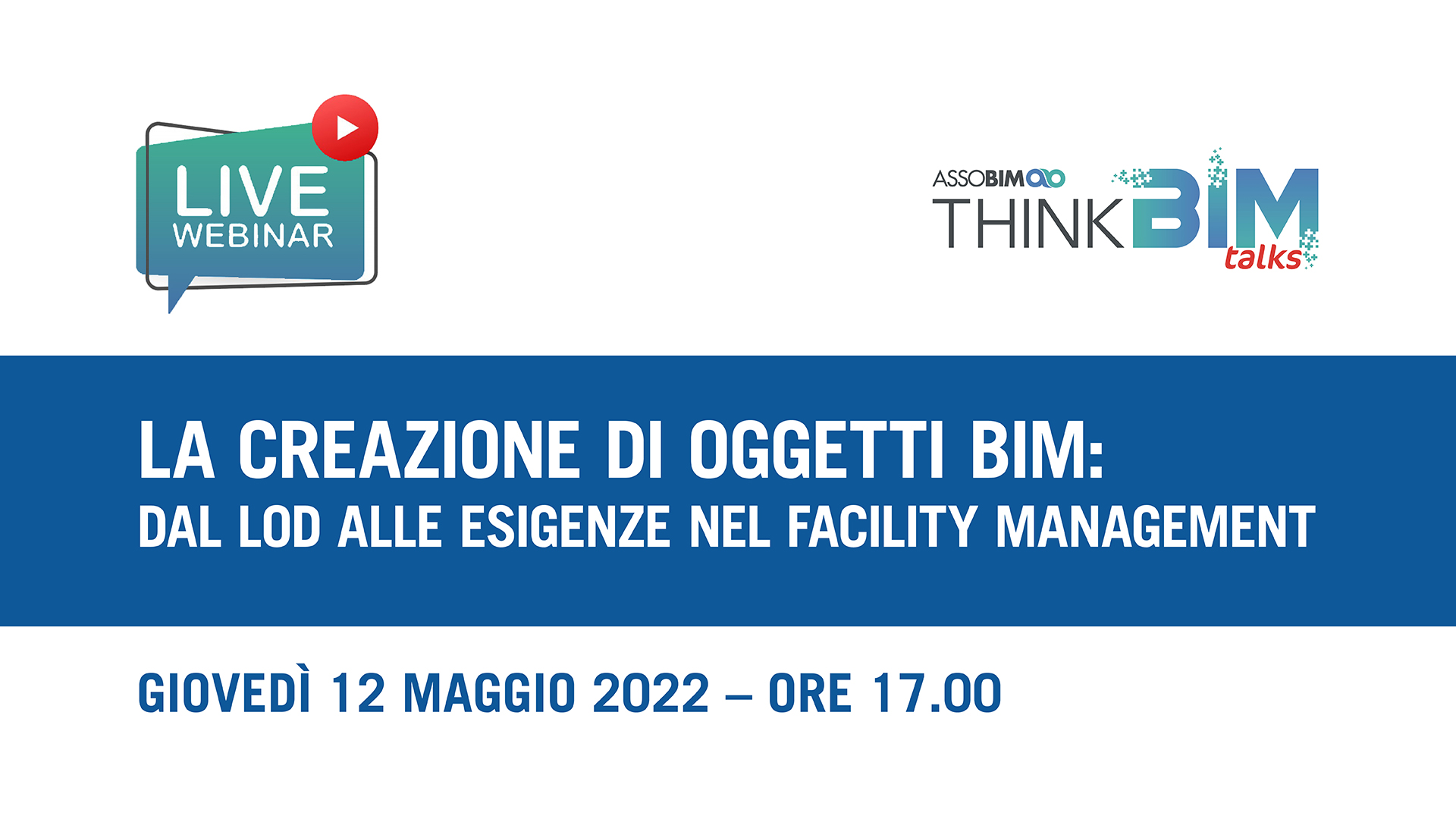 ASSOBIM organizza il Talks “a creazione di oggetti BIM: dal LOD alle esigenze nel Facility Management” per il giorno 12 maggio 2022 dalle ore 17.