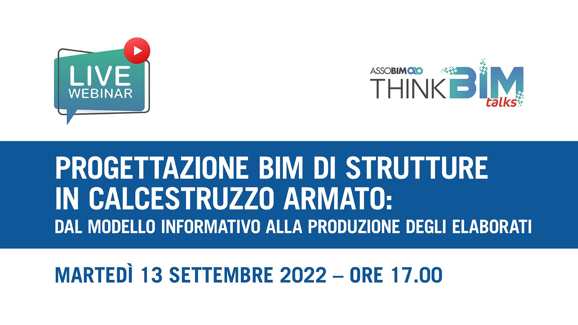 ASSOBIM organizza il Talks “Progettazione BIM di strutture in calcestruzzo armato: dal modello informativo alla produzione degli elaborati” per il giorno 13 settembre 2022 dalle ore 17.