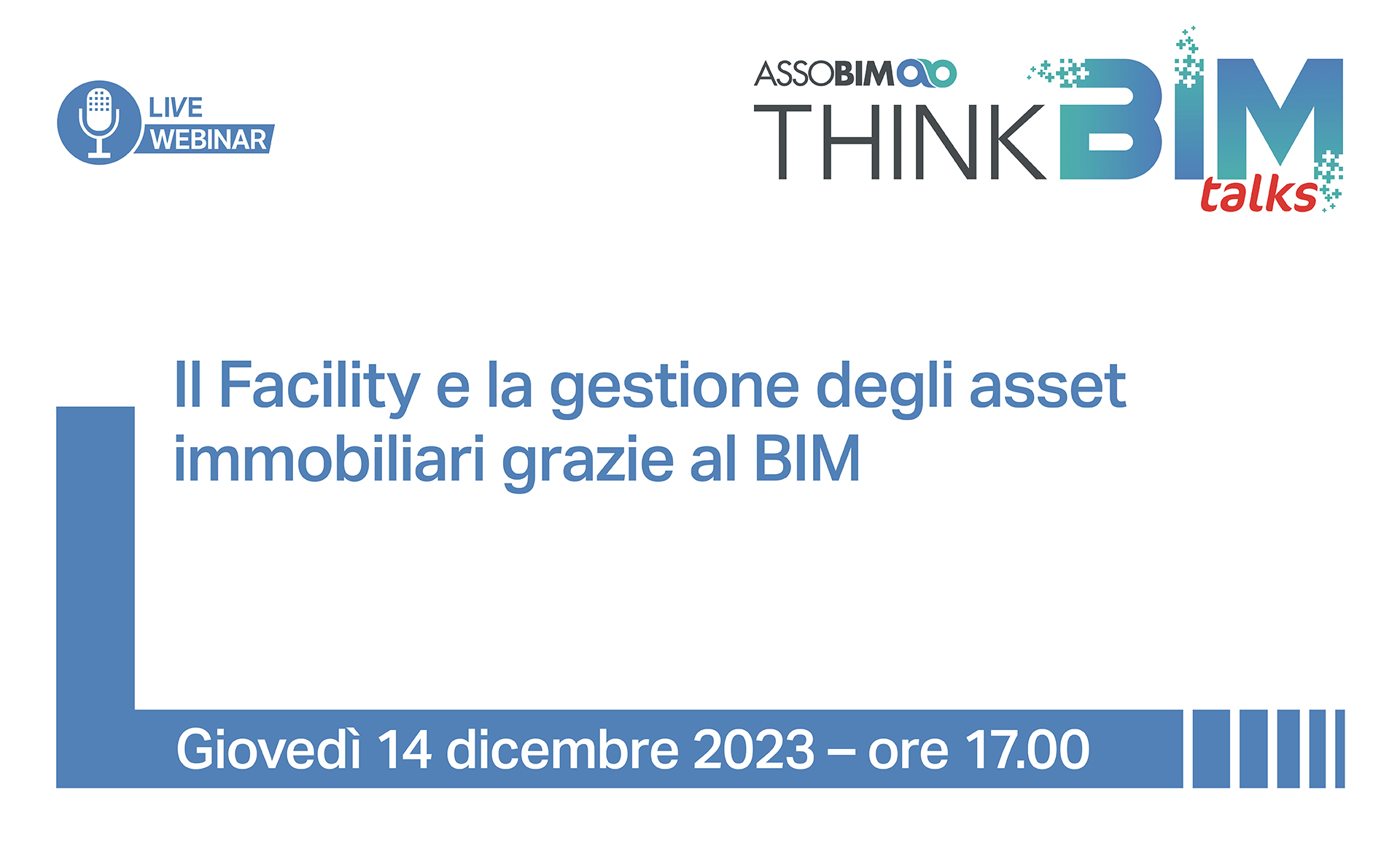 ASSOBIM organizza il Talks “Il Facility e la gestione degli asset immobiliari grazie al BIM” per il giorno 14 dicembre 2023 dalle ore 17.