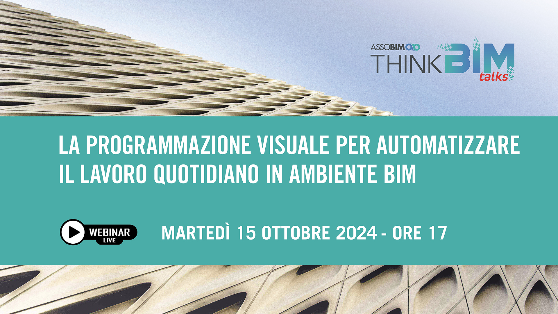 ASSOBIM organizza il Talks “La programmazione visuale per automatizzare il lavoro quotidiano in ambiente BIM” per il giorno 15 ottobre 2024 dalle ore 17.