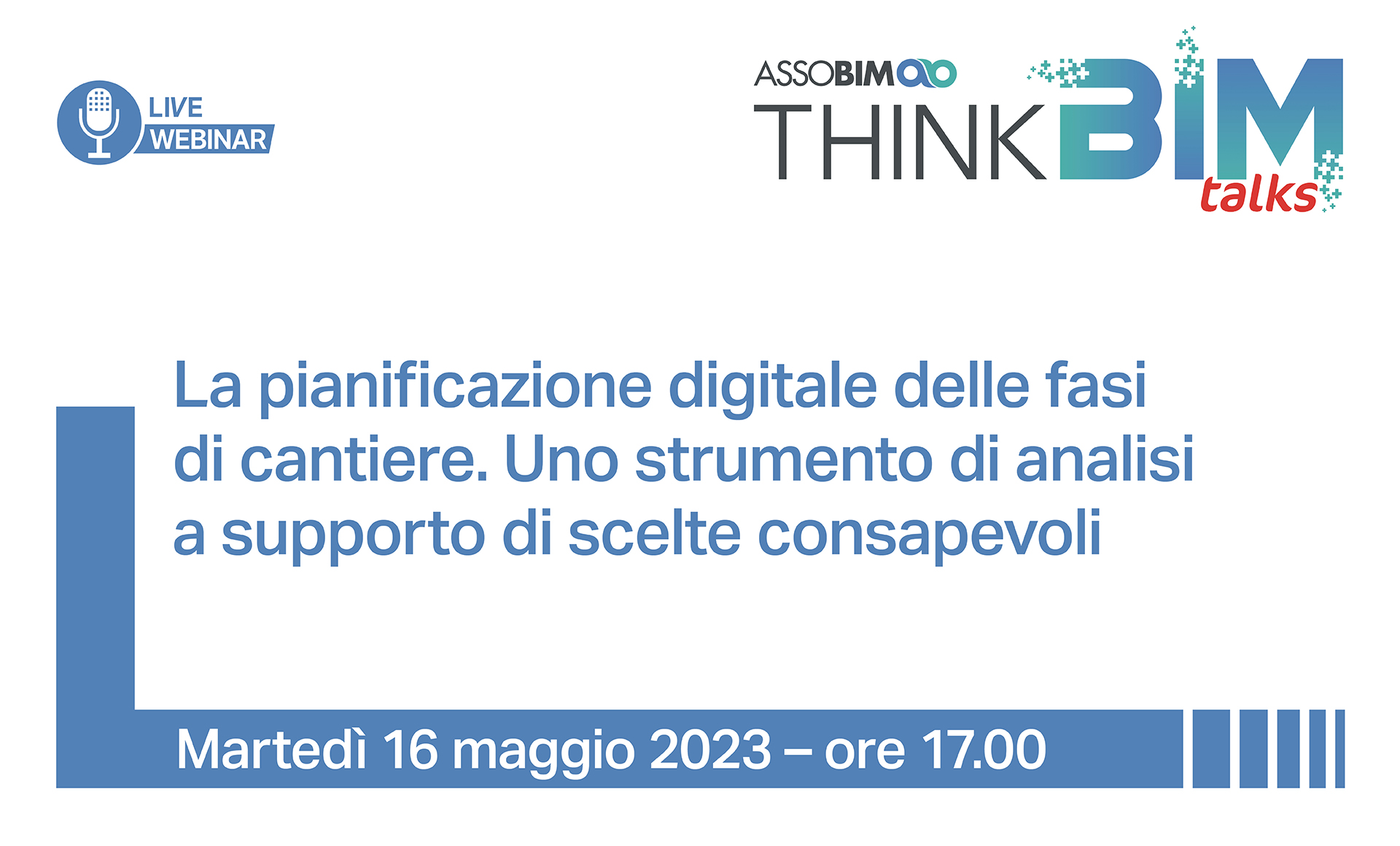 ASSOBIM organizza il Talks “La pianificazione digitale delle fasi di cantiere. Uno strumento di analisi a supporto di scelte consapevoli” per il giorno 16 maggio 2023 dalle ore 17.