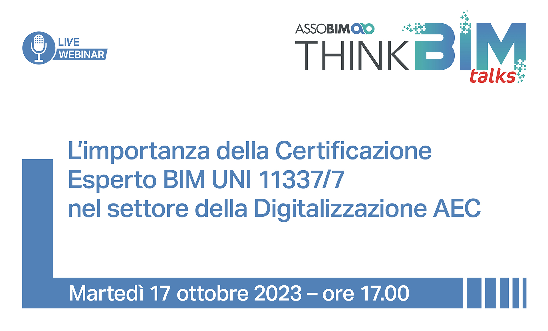 ASSOBIM organizza il Talks “L’importanza della Certificazione Esperto BIM UNI 11337/7 nel settore della Digitalizzazione AEC” per il giorno 3 ottobre 2023 dalle ore 17.