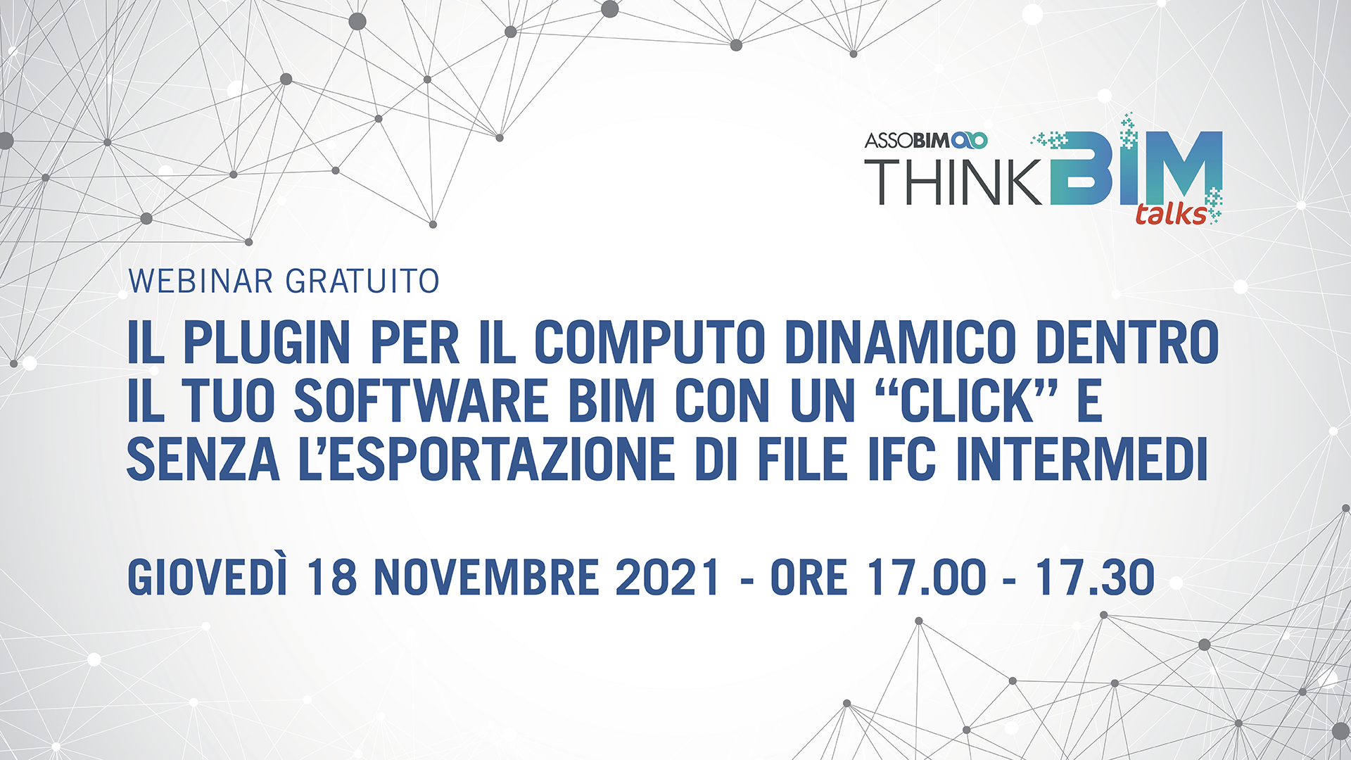 Il plugin per il computo Dinamico dentro il tuo software BIM con un “Click” e SENZA l’esportazione di file IFC intermedi – giovedì 18 novembre 2021 dalle ore 17.00 alle ore 17.30