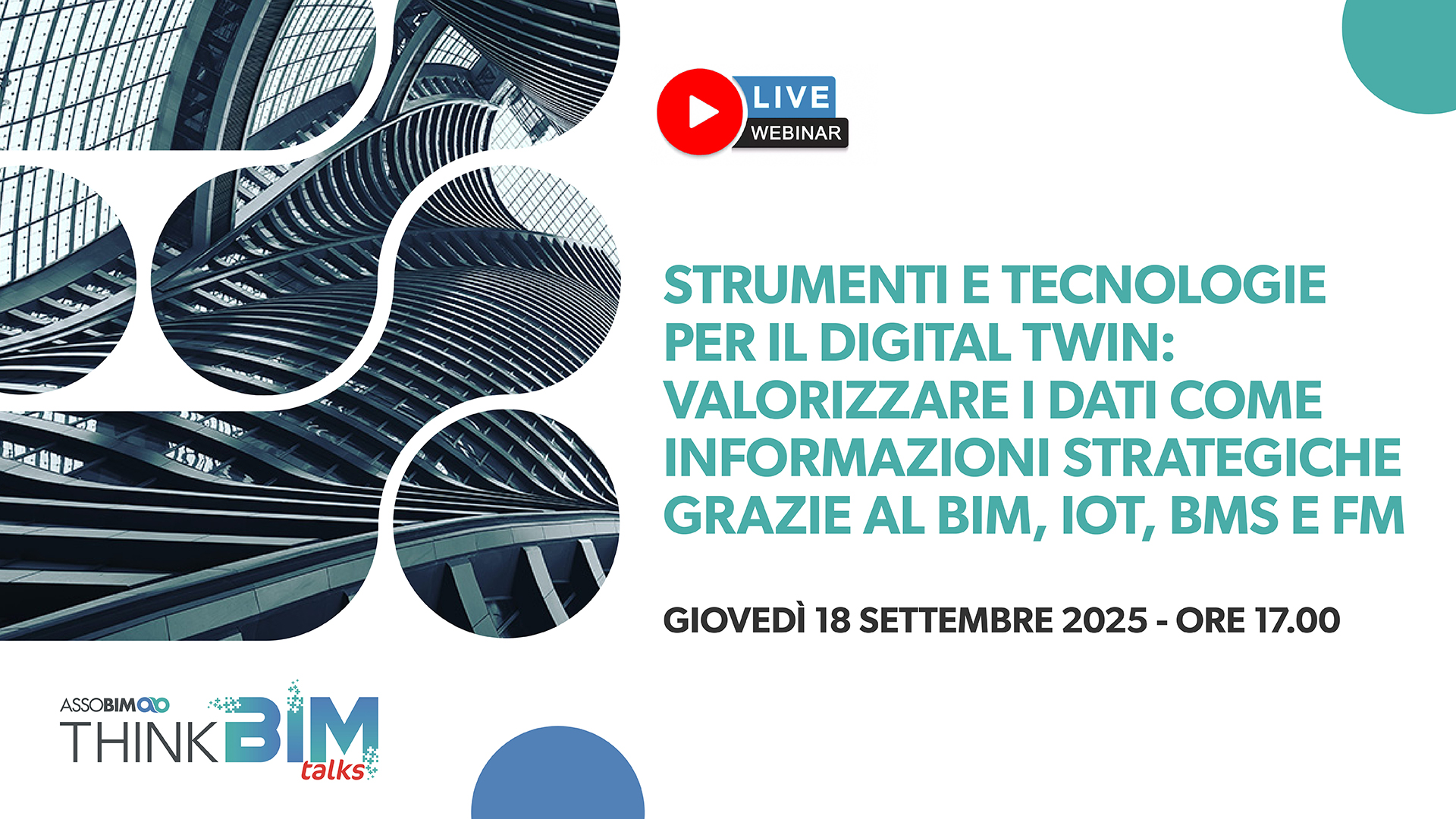 ASSOBIM organizza il Talks “Strumenti e tecnologie per il Digital Twin: valorizzare i dati come informazioni strategiche grazie al BIM, IoT, MS e FM” per il giorno 18 settembre 2025 dalle ore 17.