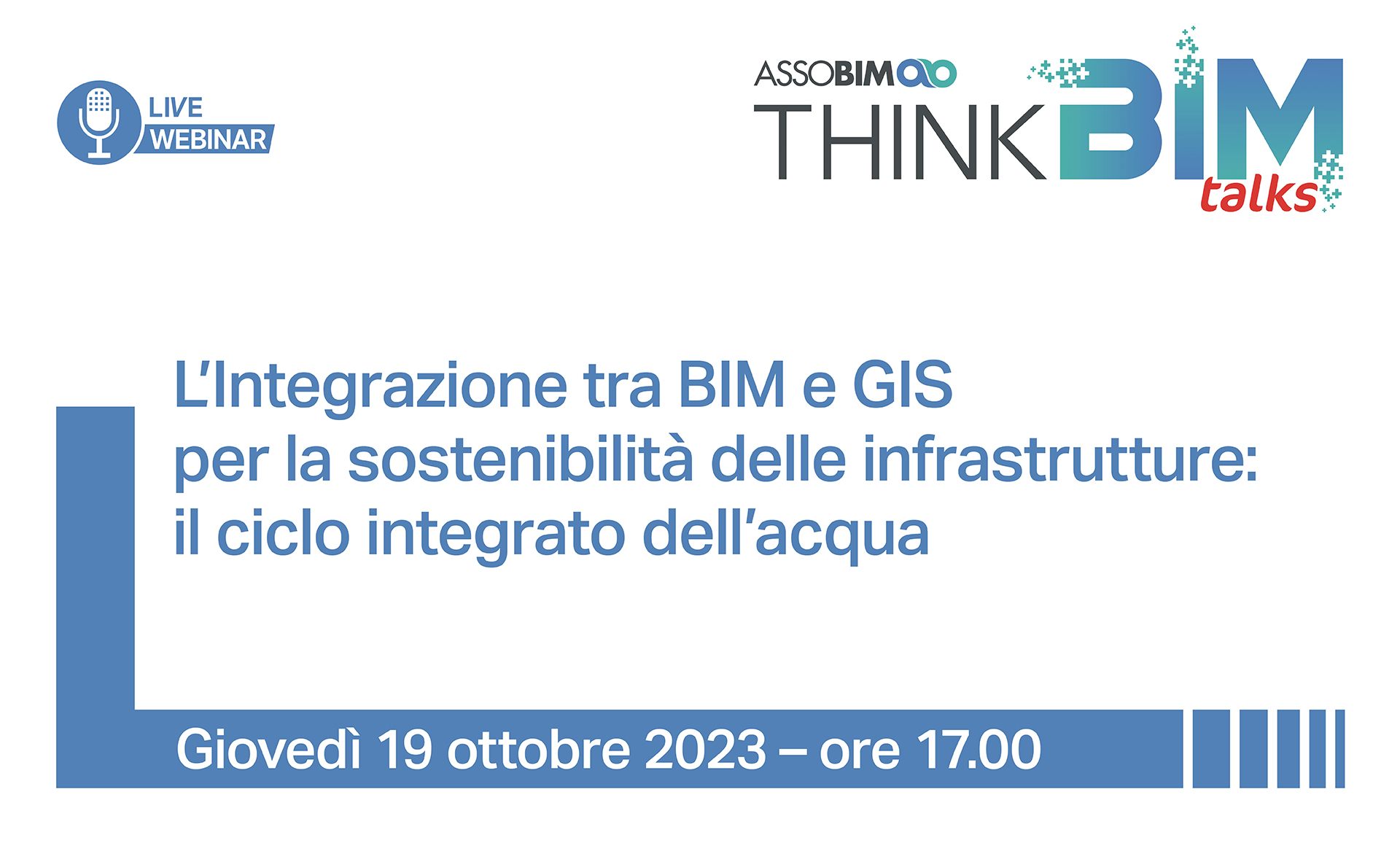 ASSOBIM organizza il Talks “L’Integrazione tra BIM e GIS per la sostenibilità delle infrastrutture: il ciclo integrato dell’acqua” per il giorno 19 ottobre 2023 dalle ore 17.