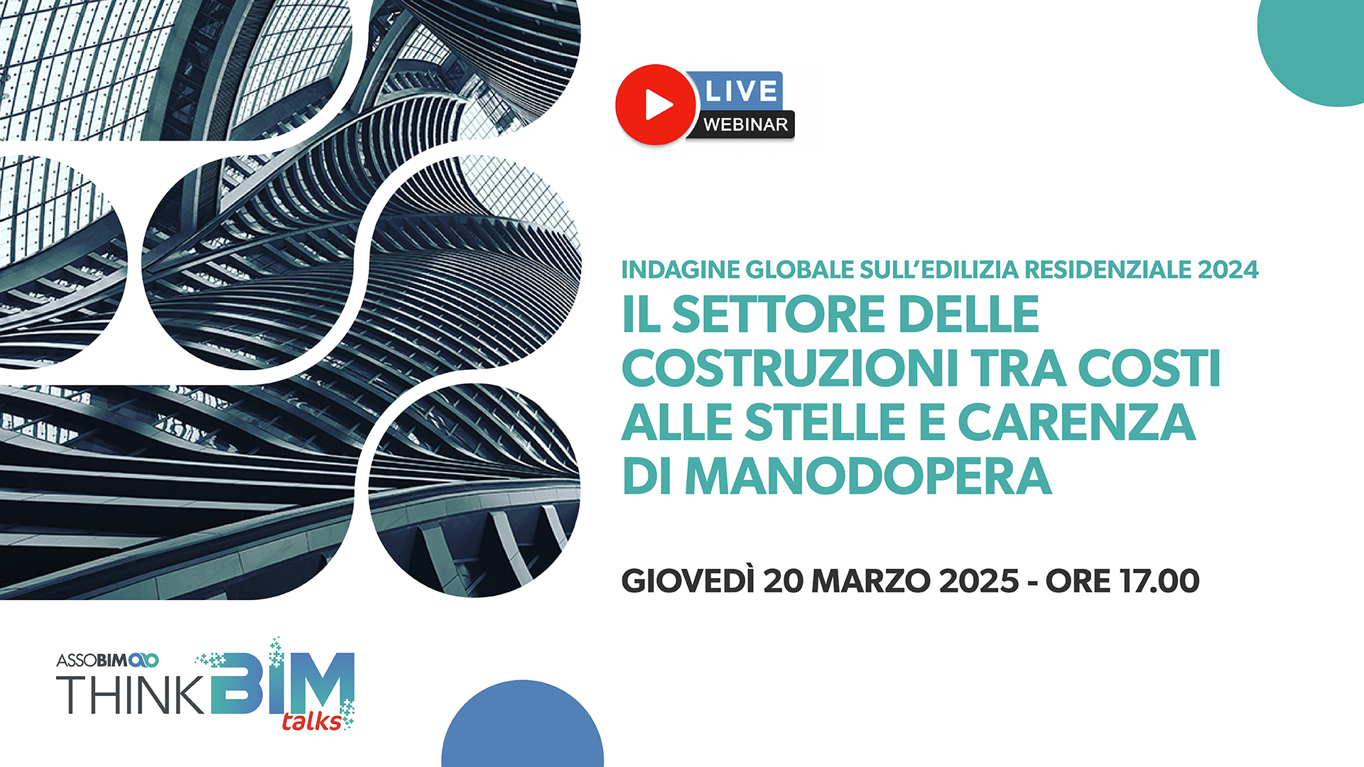 ASSOBIM organizza il Talks “Indagine Globale sull’edilizia residenziale 2024 – Il settore delle costruzioni tra costi alle stelle e carenza di manodopera” per il giorno 20 marzo 2025 dalle ore 17.