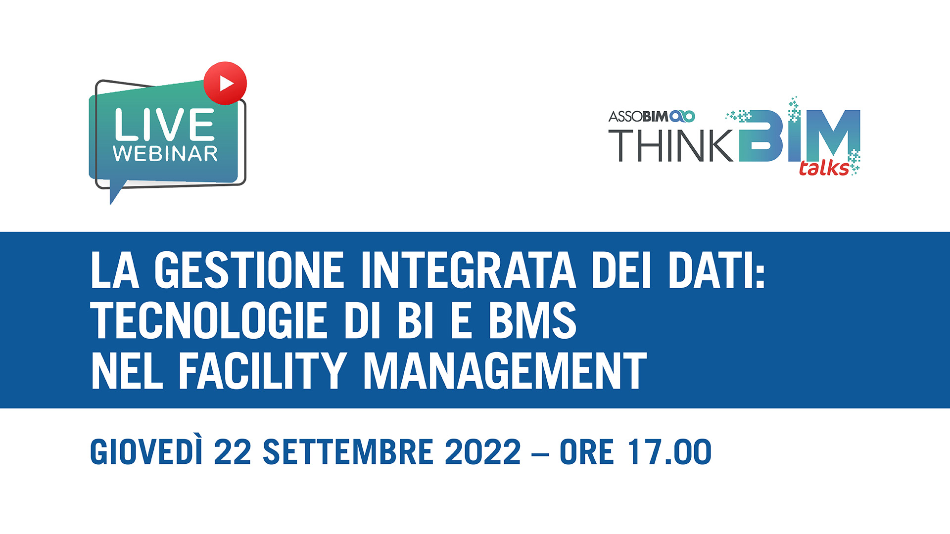 ASSOBIM organizza il Talks “La gestione integrata dei dati: tecnologie di BI e BMS nel Facility Management” per il giorno 22 settembre 2022 dalle ore 17.