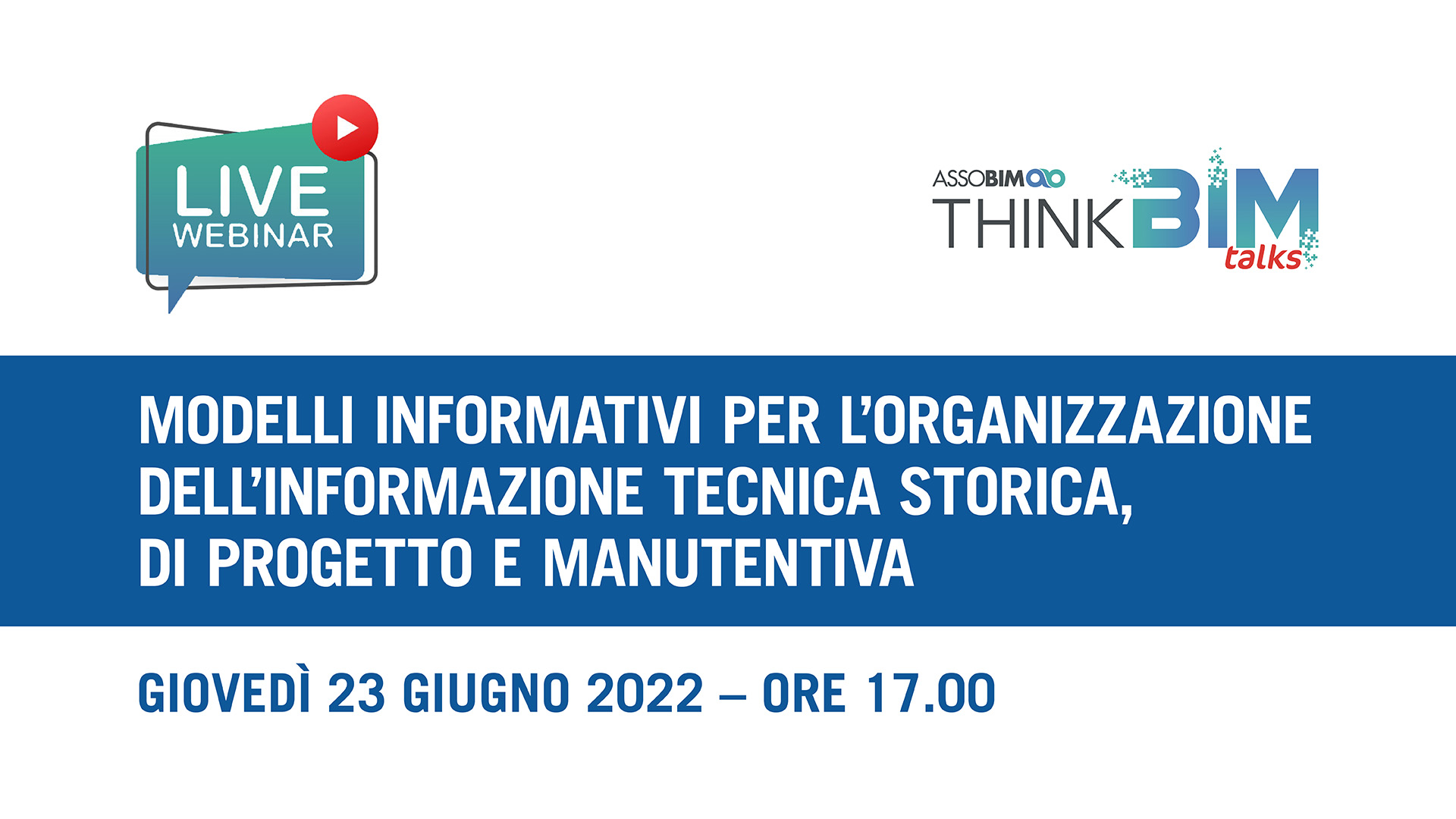 ASSOBIM organizza il Talks “Modelli informativi per l’organizzazione dell’informazione tecnica storica, di progetto e manutentiva” per il giorno 23 giugno 2022 dalle ore 17.