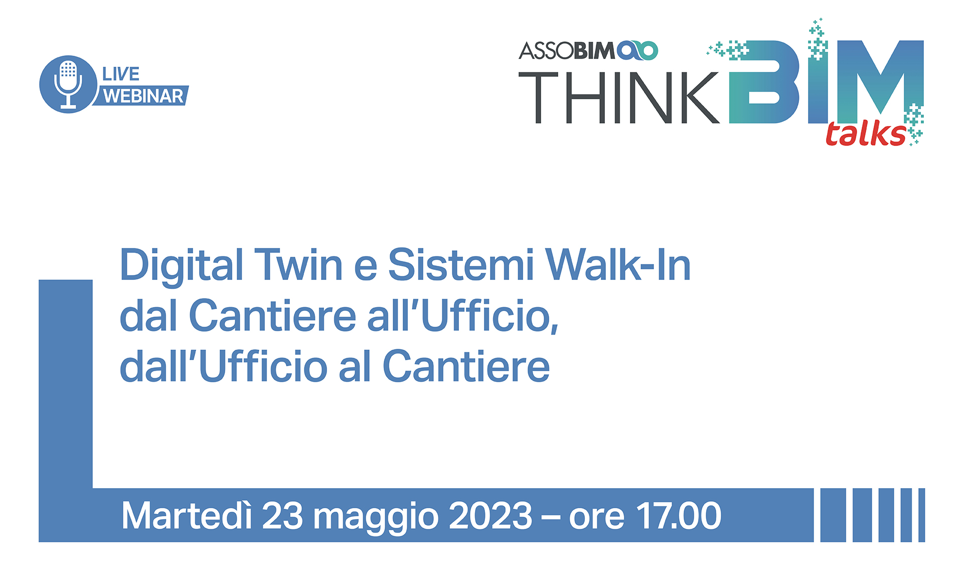 ASSOBIM organizza il Talks “Digital Twin e Sistemi Walk-In dal Cantiere all’Ufficio, dall’Ufficio al Cantiere” per il giorno 23 maggio 2023 dalle ore 17.