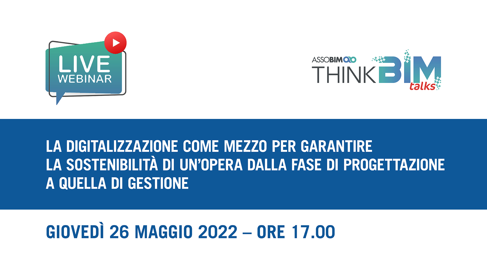 ASSOBIM organizza il Talks “La digitalizzazione come mezzo per garantire la sostenibilità di un’opera dalla fase di progettazione a quella di gestione” per il giorno 26 maggio 2022 dalle ore 17.