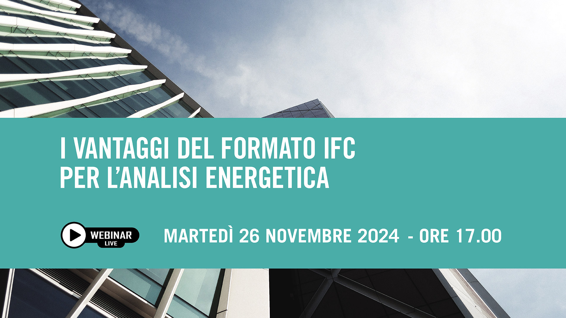 Il Building Information Modeling sta modificando processi e flussi di lavoro della filiera delle costruzioni: il disegno si trasforma in un modello ricco di dati e fondamentale diventa lo scambio di informazioni tra le discipline, scambio che deve avvenire sempre più con formati Open come l’IFC. Nel corso del webinar verrà mostrato come si articola questo flusso di lavoro, i relativi punti di forza e i vantaggi che esso comporta per arrivare all’analisi energetica con EC700 “Calcolo delle prestazioni energetiche degli edifici”.