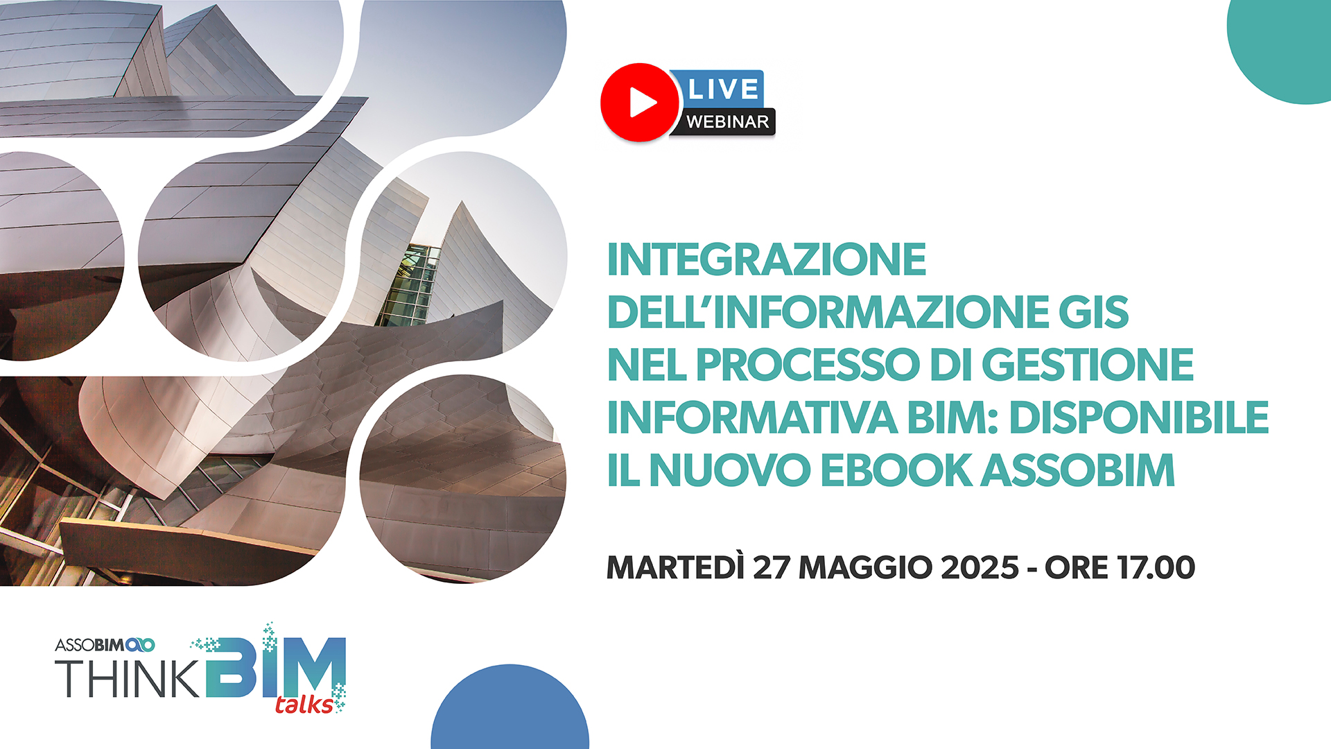 ASSOBIM organizza il Talks “Integrazione dell’informazione GIS nel processo di gestione informativa BIM: disponibile il nuovo ebook ASSOBIM” per il giorno 27 maggio 2025 dalle ore 17.