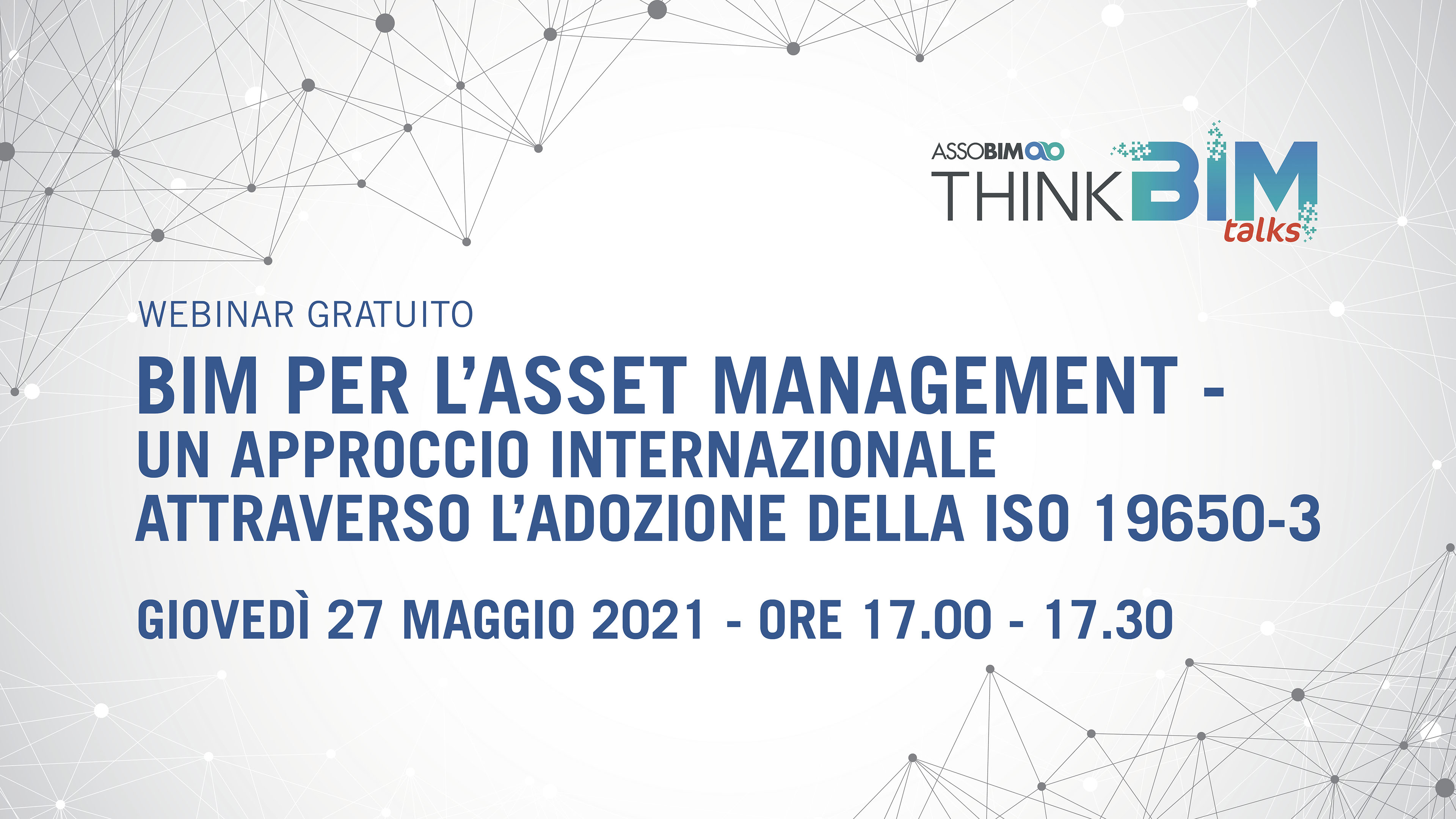 BIM PER L’ASSET MANAGEMENT – UN APPROCCIO INTERNAZIONALE ATTRAVERSO L’ADOZIONE DELLA ISO 19650-3 – giovedì 27 maggio 2021 dalle ore 17.00 alle ore 17.30