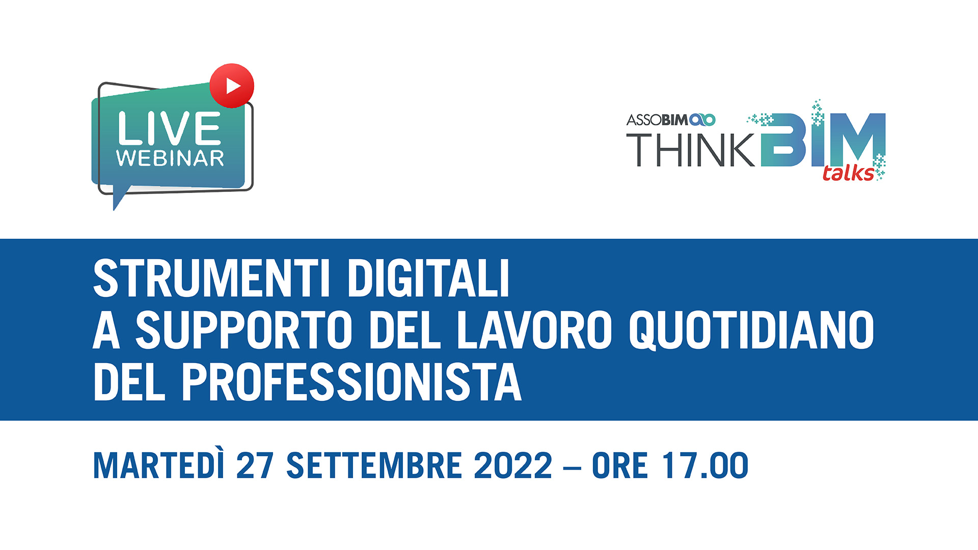 ASSOBIM organizza il Talks “Strumenti digitali a supporto del lavoro quotidiano del professionista” per il giorno 27 settembre 2022 dalle ore 17.
