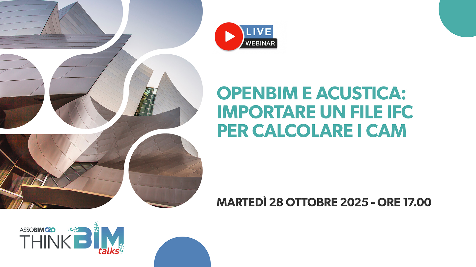 ASSOBIM organizza il Talks “OpenBIM e acustica: importare un file IFC per calcolare i CAM” per il giorno 28 ottobre 2025 dalle ore 17.