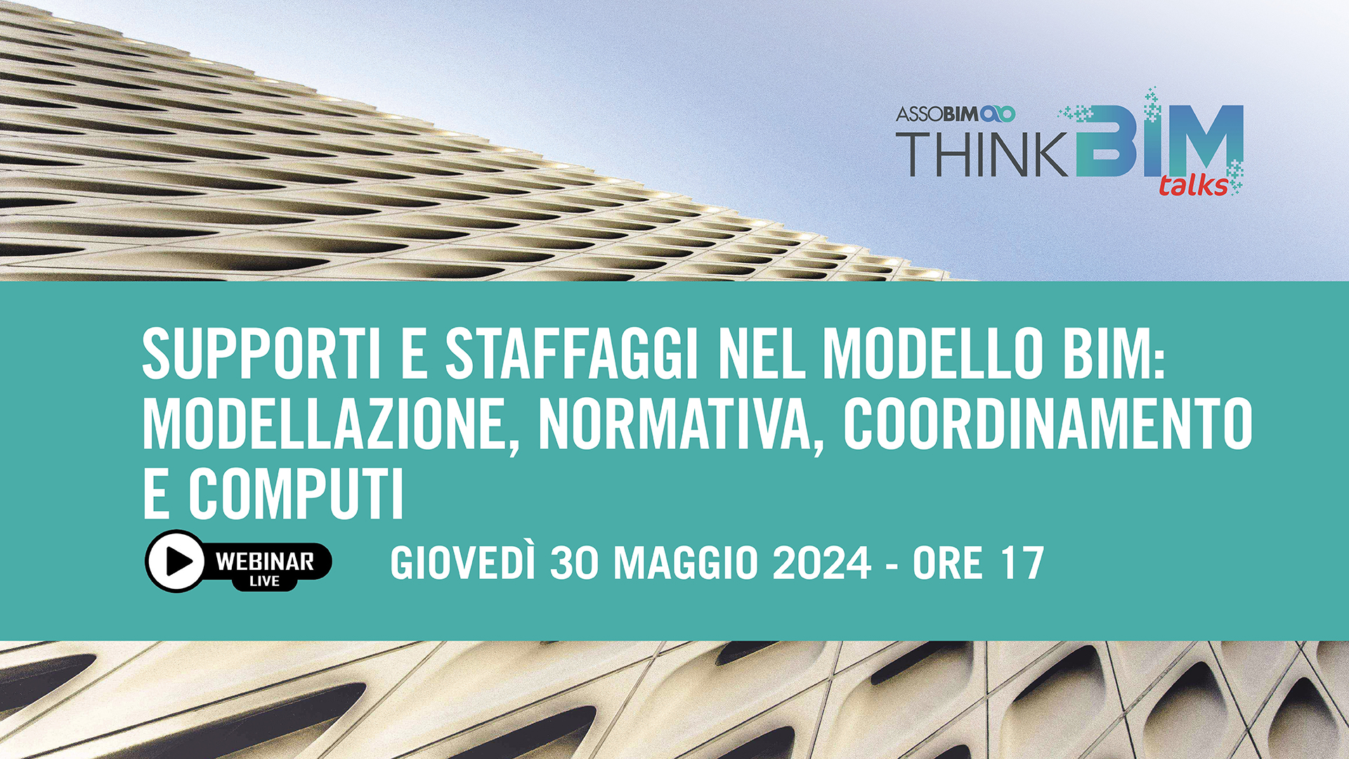 ASSOBIM organizza il Talks “Supporti e staffaggi nel modello BIM : modellazione, normativa, coordinamento e computi” per il giorno 30 maggio 2024 dalle ore 17.