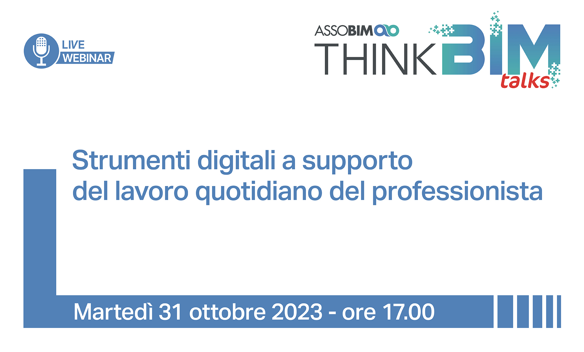 ASSOBIM organizza il Talks “Strumenti digitali a supporto del lavoro quotidiano del professionista” per il giorno 31 ottobre 2023 dalle ore 17.
