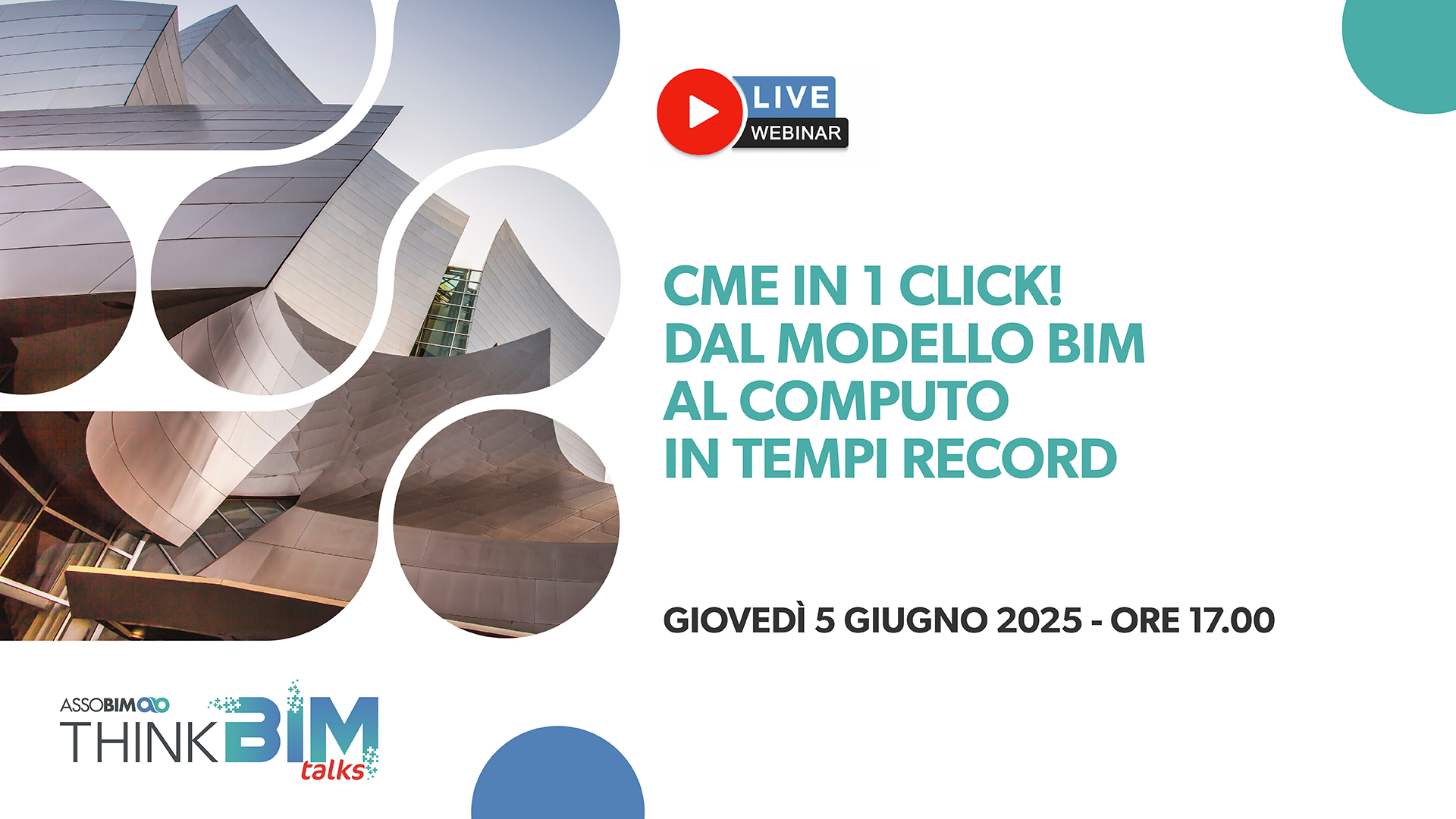 ASSOBIM organizza il Talks “CME in 1 click! Dal modello BIM al computo in tempi record” per il giorno 5 giugno 2025 dalle ore 17.