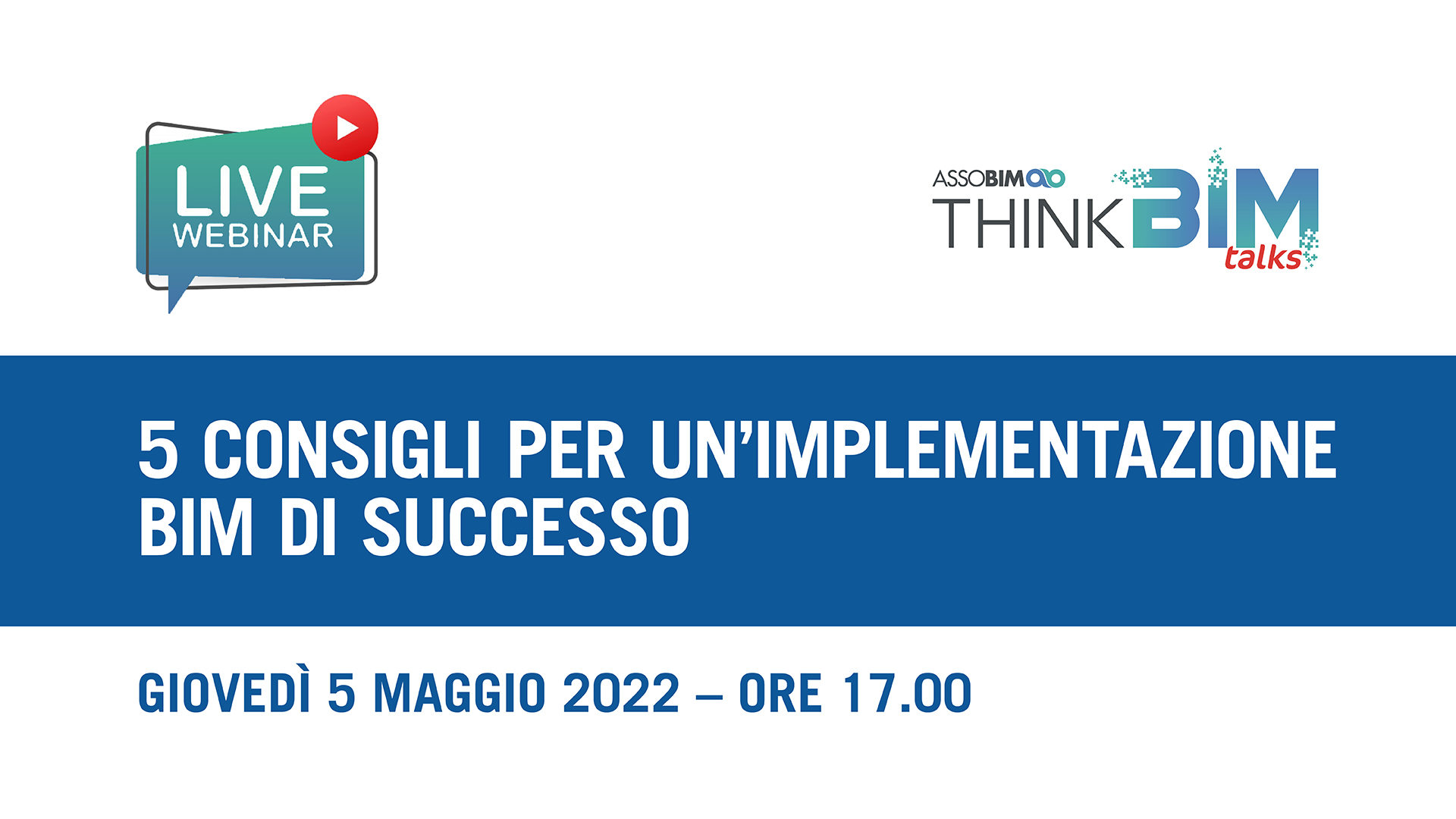 ASSOBIM organizza il Talks “ 5 consigli per un’implementazione BIM di successo” per il giorno 5 maggio 2022 dalle ore 17.