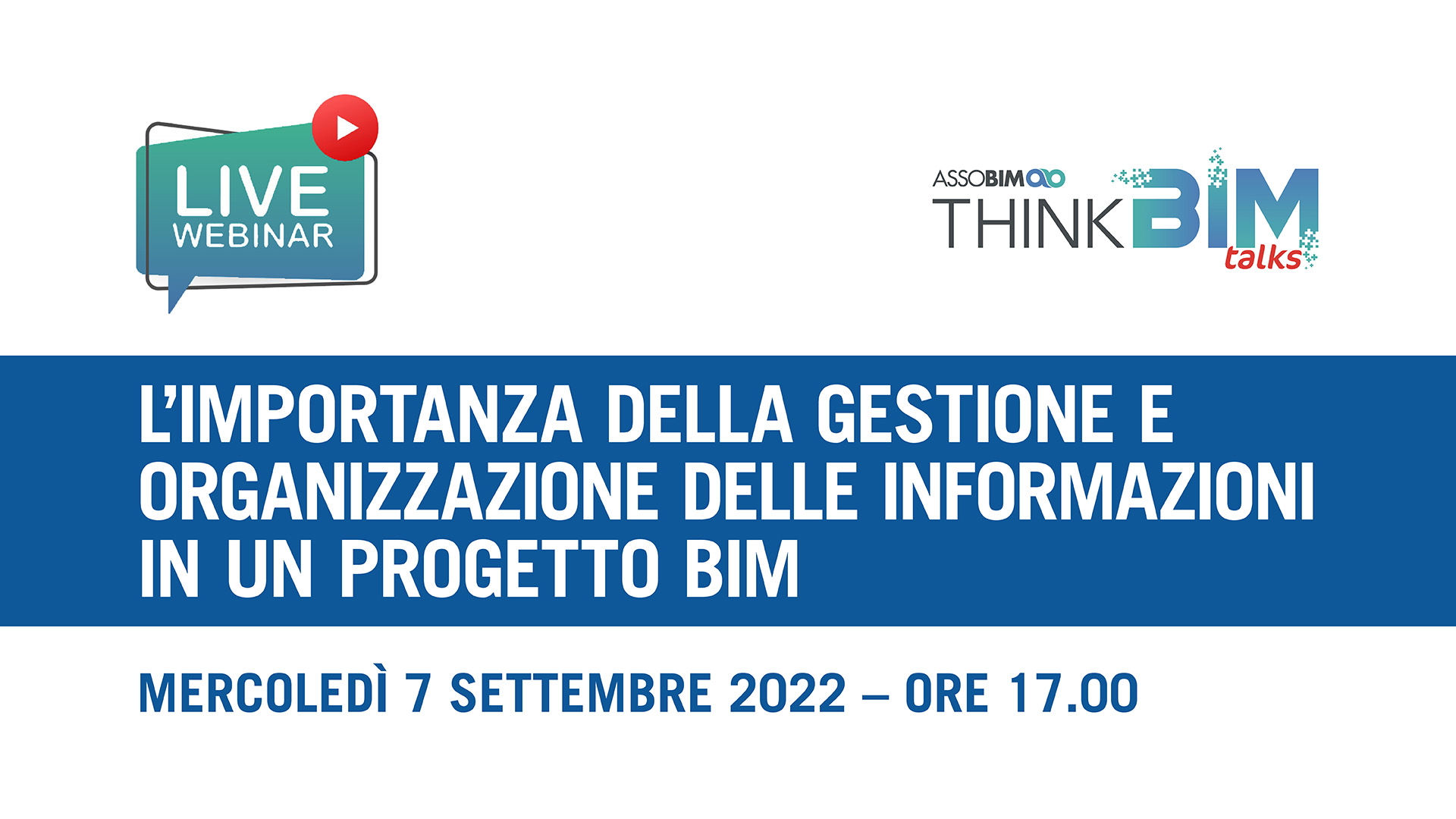 ASSOBIM organizza il Talks “L’importanza della gestione e organizzazione delle informazioni in un progetto BIM” per il giorno 7 settembre 2022 dalle ore 17.